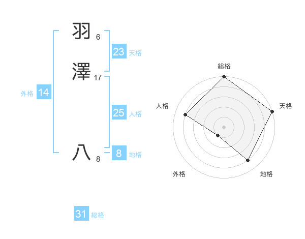 羽澤 八さんの総格は31画の5点!