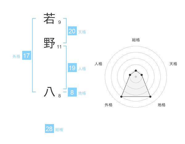 若野 八さんの総格は28画の1点!