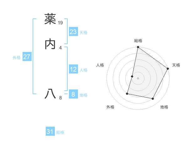 薬内 八さんの総格は31画の5点!