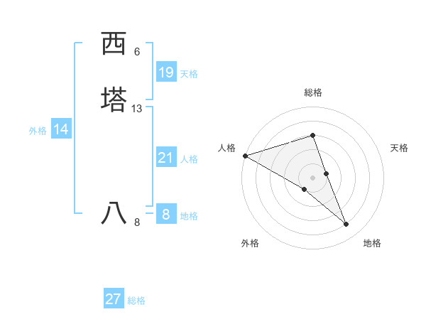 西塔 八さんの外格は14画の1点!