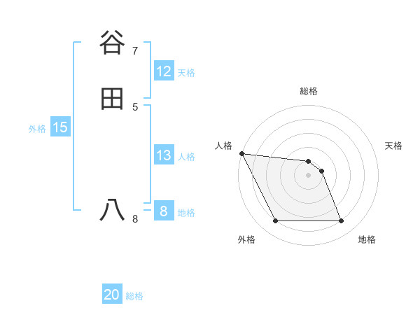 谷田 八さんの天格は12画の1点!