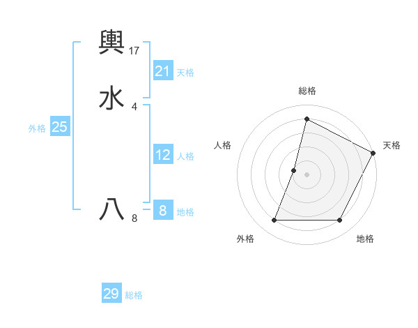 輿水 八さんの総格は29画の4点!