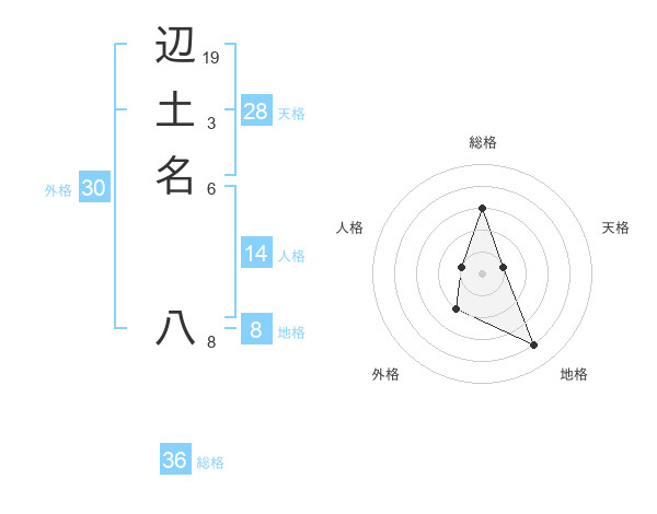 辺土名 八さんの地格は8画の4点!