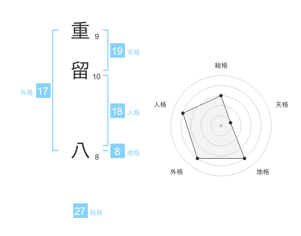 重留 八さんの総格は27画の3点!
