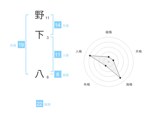 野下 八さんの総格は22画の1点!