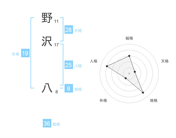 野沢 八さんを姓名の画数から五運を鑑定