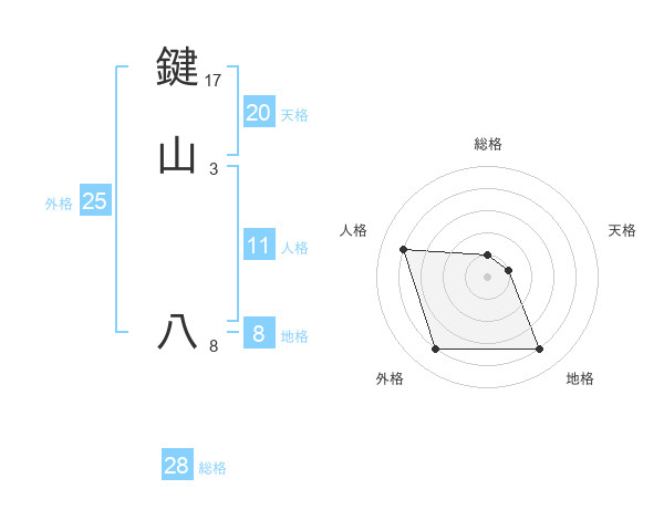 鍵山 八さんの総格は28画の1点!