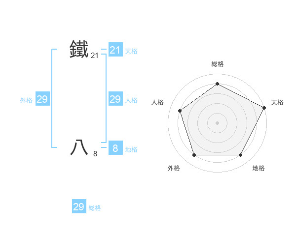 鐵 八さんの総格は29画の4点!