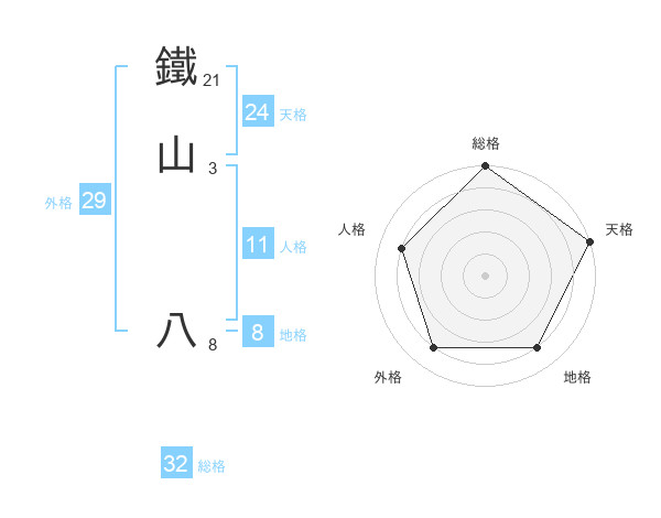 鐵山 八さんの天格は24画の5点!