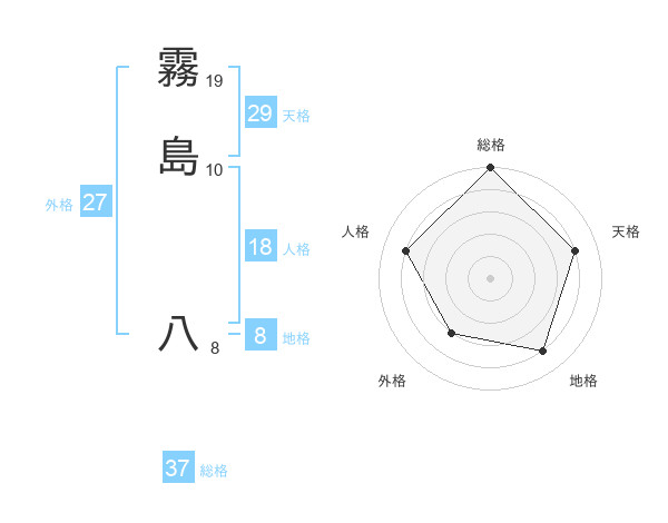 霧島 八さんの総格は37画の5点!