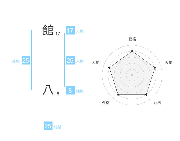 館 八さんの総格は25画の4点!