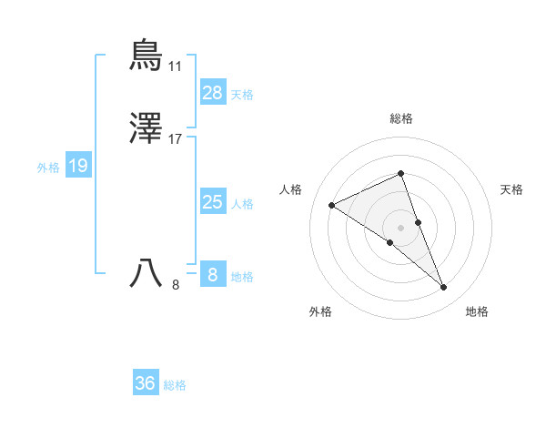 鳥澤 八さんの地格は8画の4点!