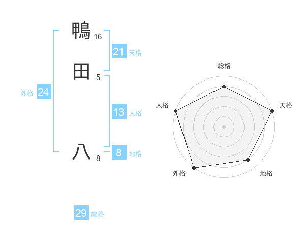 鴨田 八さんの外格は24画の5点!