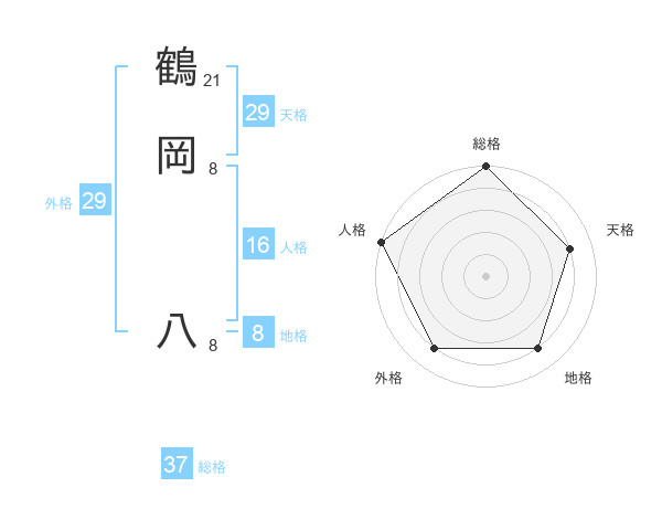 鶴岡 八さんの総格は37画の5点!