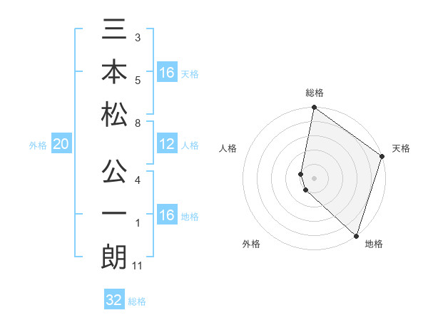 三本松 公一朗さんの天格は16画の5点!