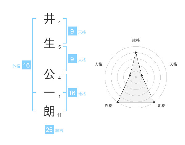 井生 公一朗さんの総格は25画の4点!
