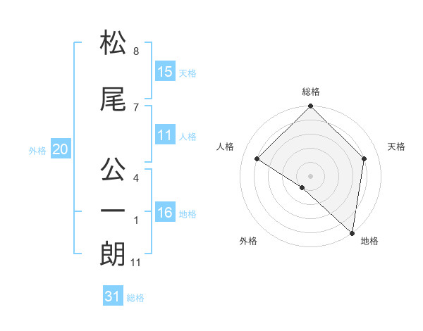 松尾 公一朗さんを姓名の画数から五運を鑑定