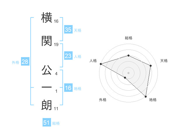 横関 公一朗さんの総格は51画の3点!