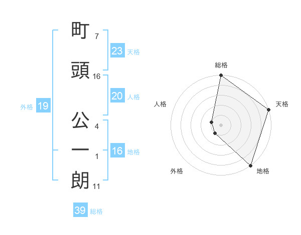 町頭 公一朗さんの総格は39画の5点!