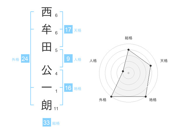 西牟田 公一朗さんの総格は33画の4点!
