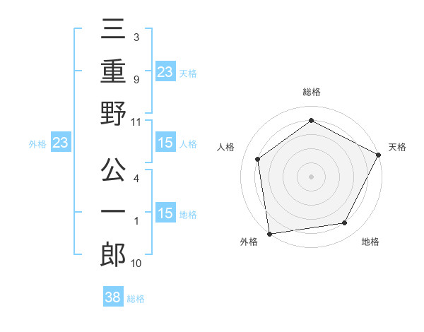 三重野 公一郎さんを姓名の画数から五運を鑑定