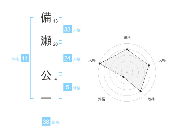 備瀬 公一さんを姓名の画数から五運を鑑定