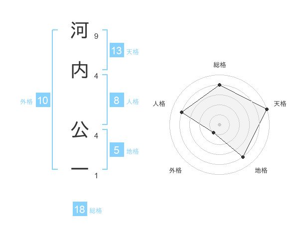 河内 公一さんの天格は13画の5点!
