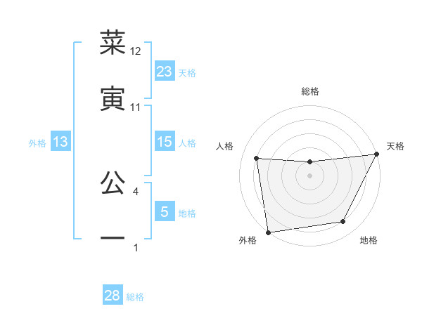 菜寅 公一さんの外格は13画の5点!