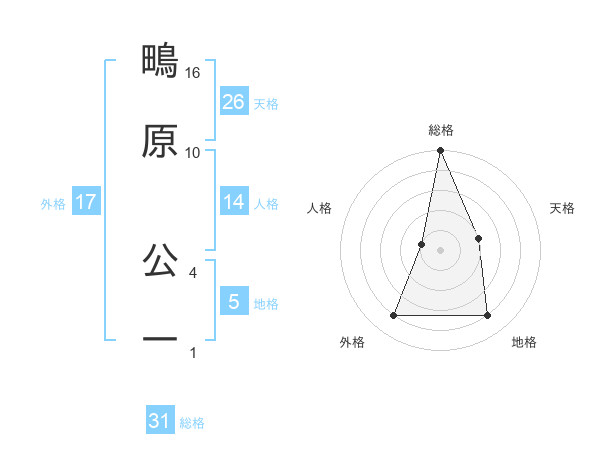 鴫原 公一さんの総格は31画の5点!
