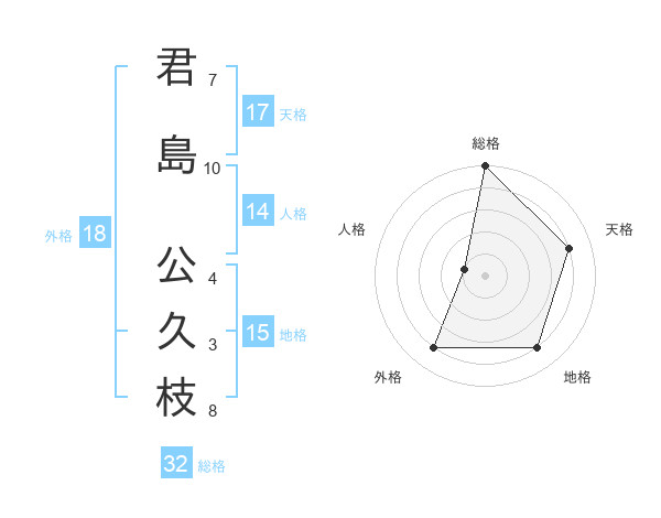 君島 公久枝さんの天格は17画の4点!