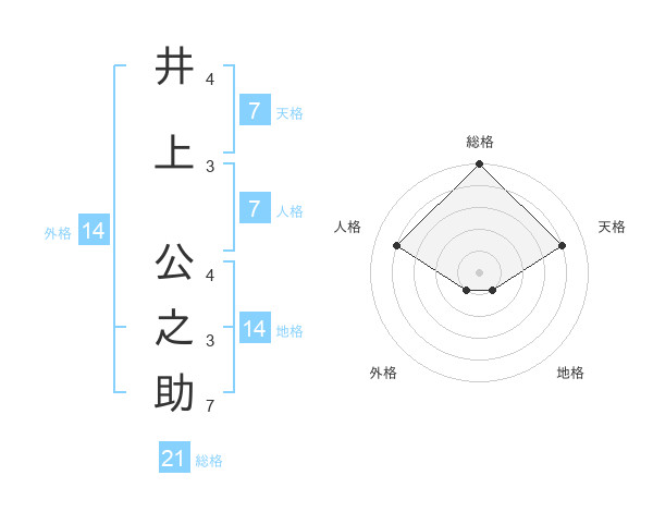 井上 公之助さんの天格は7画の4点