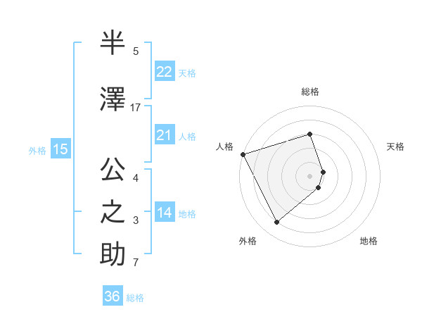 半澤 公之助さんを姓名の画数から五運を鑑定