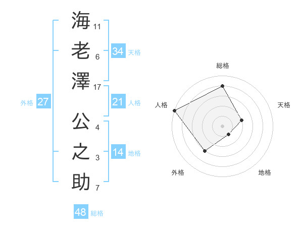 海老澤 公之助さんを姓名の画数から五運を鑑定