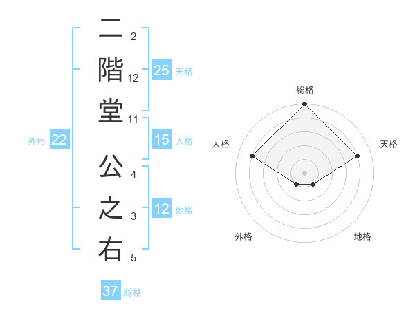 二階堂 公之右さんの総格は37画の5点!
