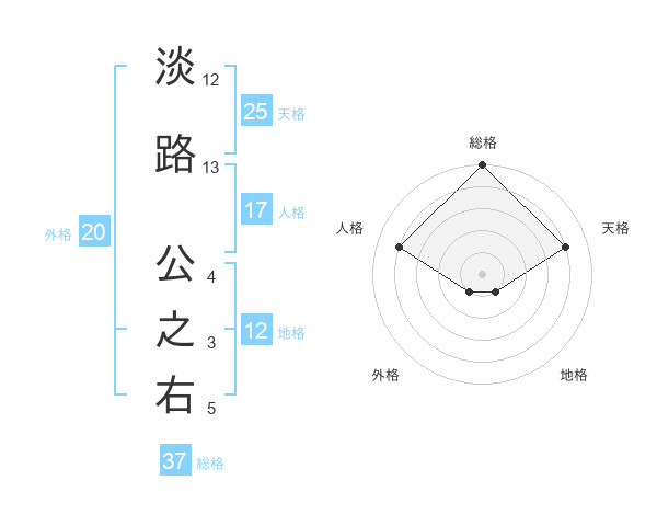 淡路 公之右さんを姓名の画数から五運を鑑定