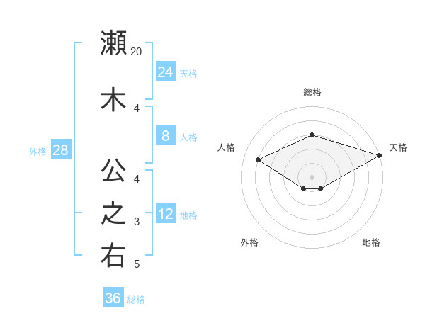 瀬木 公之右さんを姓名の画数から五運を鑑定