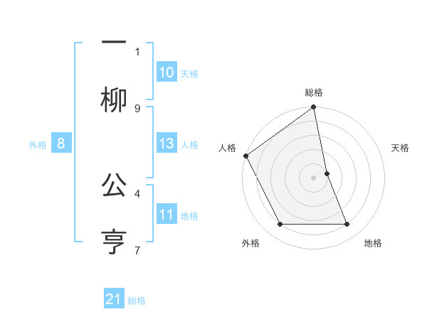 一柳 公亨さんの総格は21画の5点!