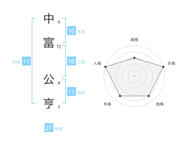 中富 公亨さんの外格は11画の4点!