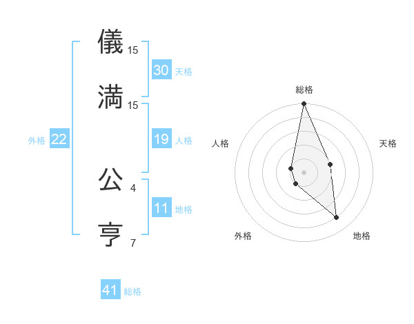 儀満 公亨さんの総格は41画の5点!