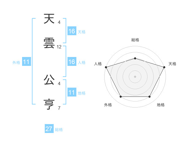天雲 公亨さんの外格は11画の4点!