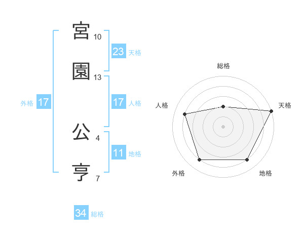 宮園 公亨さんの外格は17画の4点!