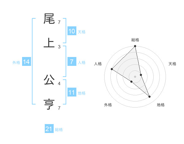 尾上 公亨さんの総格は21画の5点!