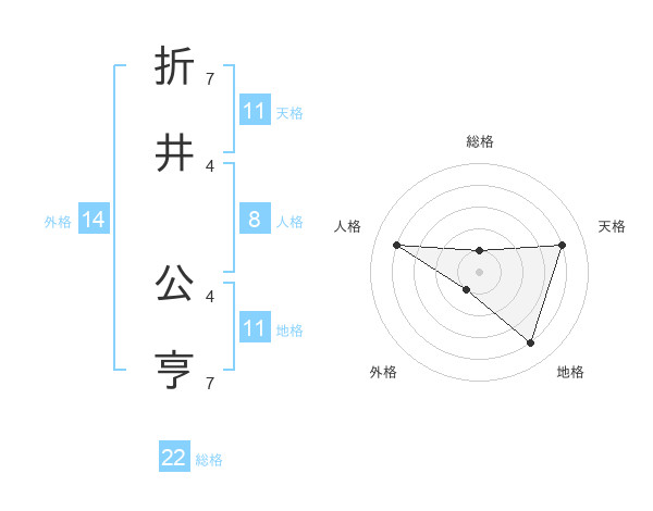 折井 公亨さんの総格は22画の1点!