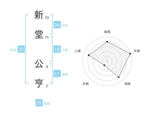 新堂 公亨さんの天格は24画の5点!