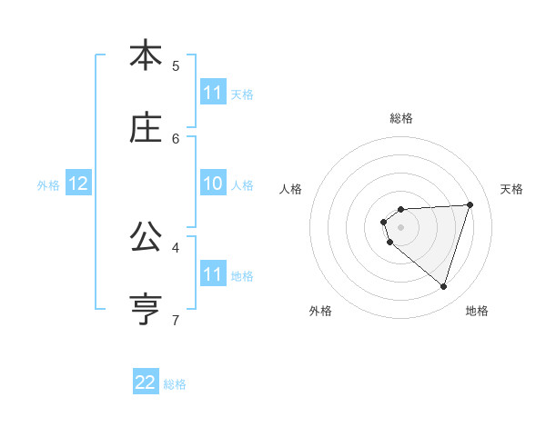 本庄 公亨さんを姓名の画数から五運を鑑定