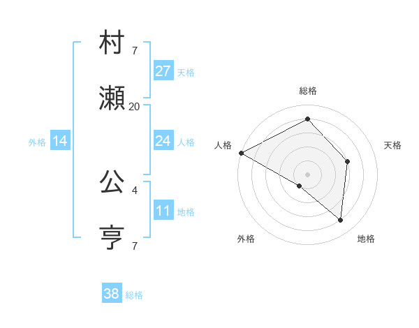 村瀬 公亨さんの総格は38画の4点!