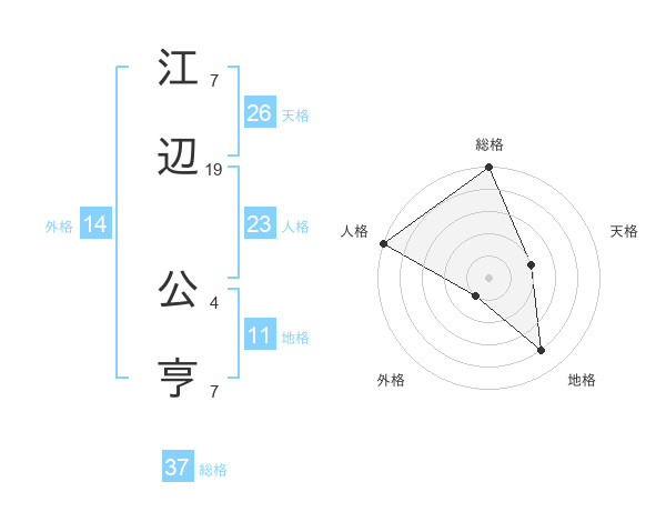 江辺 公亨さんの総格は37画の5点!