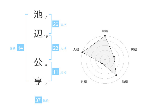 池辺 公亨さんの総格は37画の5点!