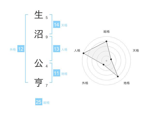 生沼 公亨さんの総格は25画の4点!