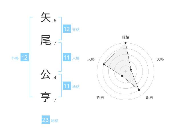 矢尾 公亨さんの天格は12画の1点!